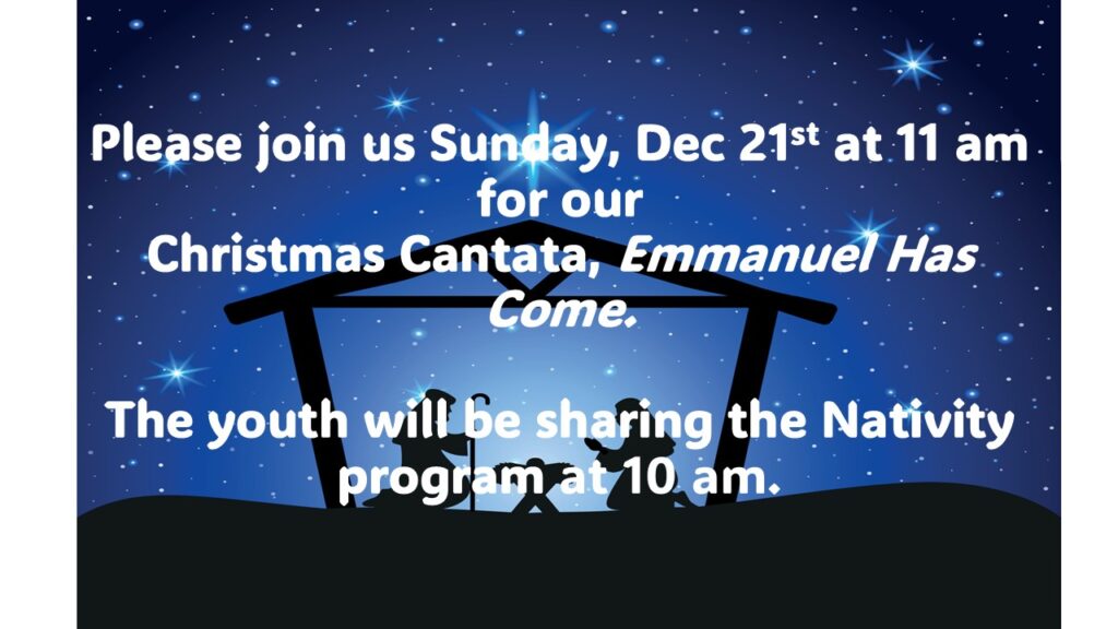 Sunday morning at 10 for Bible Study Groups and at 11 am for Worship together.